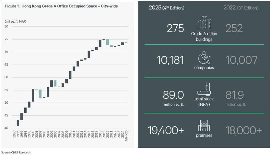 世邦魏理仕發表《演化.蛻變 – 香港寫字樓市場三年論 2025》研究報告,儘管企業強調節省成本,但部份行業擴大寫字樓空間,令總租賃面積增加了 110萬平方呎。增長部分由非傳統租戶行業推動,這些行業通常在甲級寫字樓市場的活躍度較低。許多主要產業仍處於收縮狀態。儘管租賃率有所上升,但供應顯著增加令本港空置率比疫情前增加了近兩倍,目前17% 以上的空置率屬歷史新高。