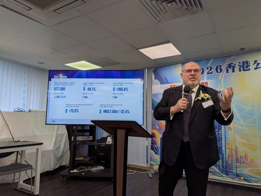 畢馬威亞太區消費品零售行業主管Anson Bailey以《Illicit Cigarette Assessment in Hong Kong》為題,剖析了香港煙草稅變動、非法香煙市場及對政府財政的影響。Anson Bailey指出,政府近年兩度大幅增加煙草稅率,分別於2023年及2024年上調 31.5%及31.9%。然而香港煙民數目保持穩定,2023年每日吸煙人數僅較2021年微跌0.7%,約為57.73萬人。